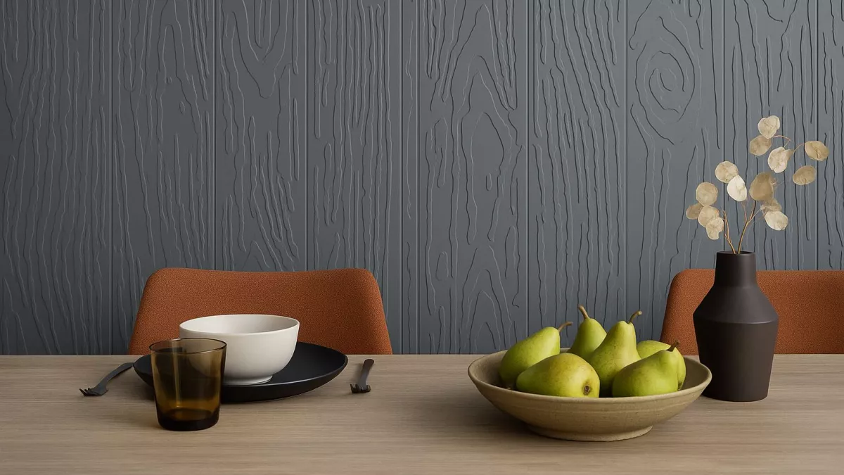 Akustik Tapete Elitis WOOD hat die Optik von sandgestrahltem Holz. Das reliefartige 3D Design der Elitis Wandverkleidung WOOD verleiht durch die virtuelle Holzmaserung und das Spiel von Licht und Schatten Ihren Wänden das gewisse Etwas. Die Design Tapete verfügt über Schallschutz Eigenschaften und kann dazu beitragen die Raumakustik zu verbessern. Die extrabreiten Bahnen (124 cm) können ansatzfrei verlegt werden. Elitis WOOD ist eins von vier Dessins der schalldämmenden Tapeten Kollektion PEACE. Die 3D Tapeten Kollektion PEACE hebt Effekte natürlicher Materialien hervor.