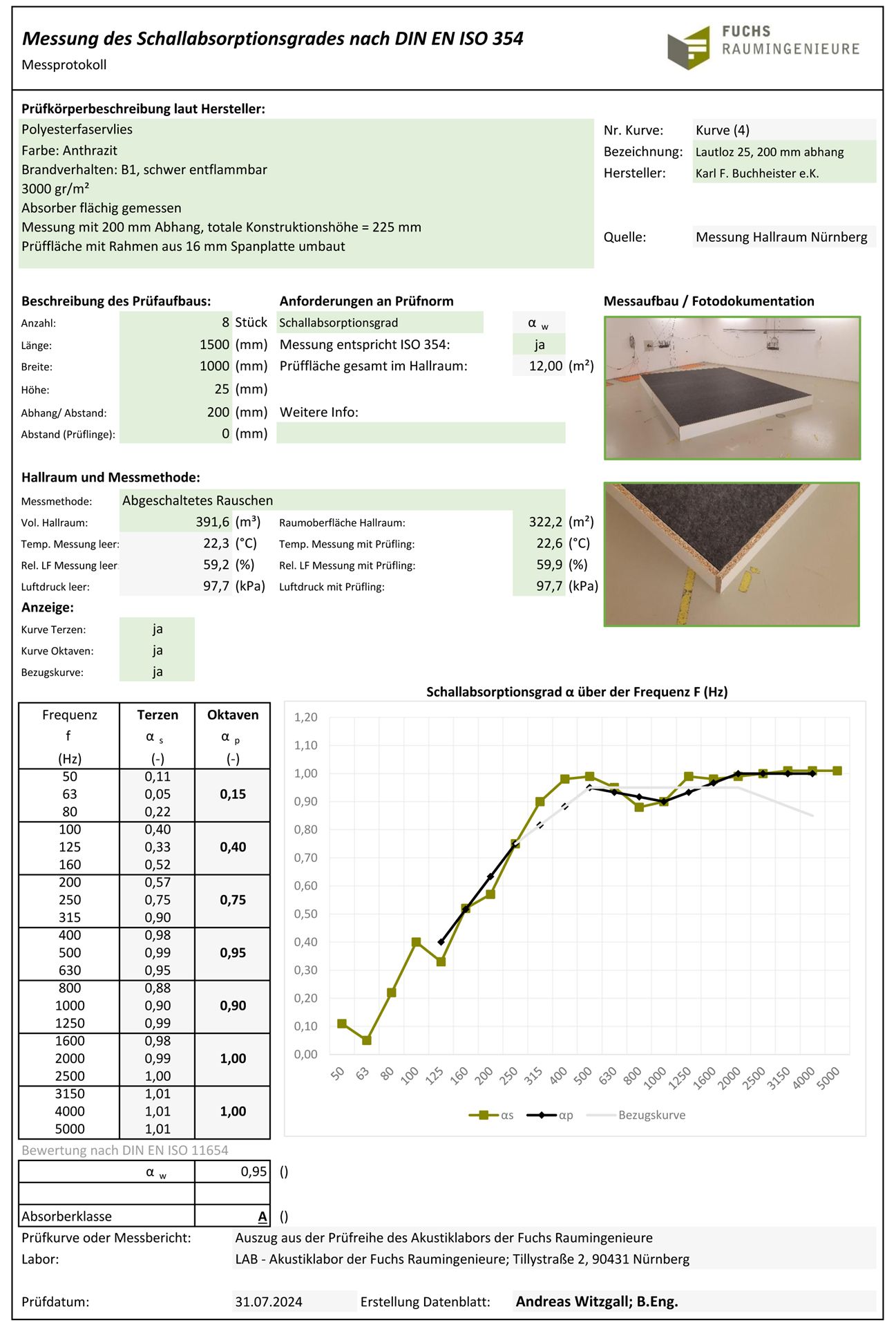 Schallabsorptionsklasse A, Schallabsorptionsgrad aw 0,95 |