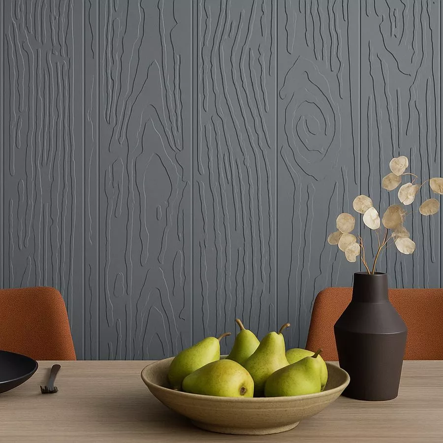 Akustik Tapete Elitis WOOD hat eine reliefartige, dreidimensionale Oberfläche in Holz-Optik. Die Elitis Wandverkleidung WOOD verbessert nachweislich die Akustik im Raum. Breite ca. 124 cm, Zuschnitt nach Maß, Preis pro lfm