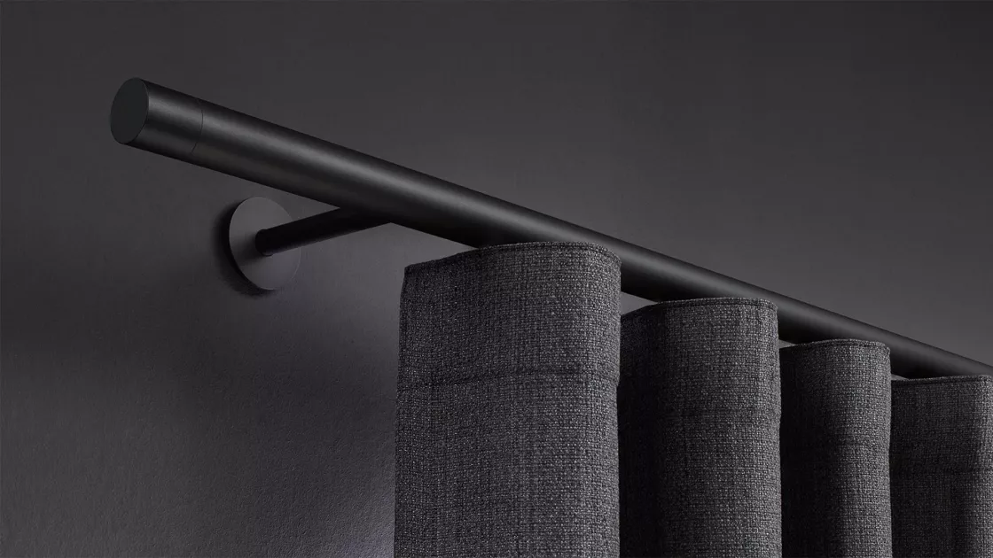 Gardinenstange schwarz matt LINE überzeugt durch die minimalistische Design Optik. Die hochwertige Vorhangstange in schwarz seidenmatt kann sich perfekt im Interior anpassen, online auf Maß. Ab