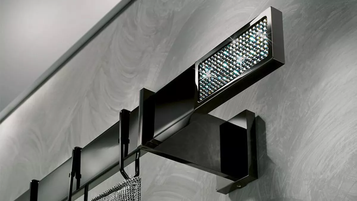 Eine Gardinenstange in Schwarz glänzend. Edel präsentiert sich das Flachprofil ELSA von Casa Valentina. Das Endstück mit Glas-Steinen besetzt sorgt für einen glamourösen Auftritt. Diese Gardinenstange gibt es jedoch auch ohne Glamour, mit schlichten kurzen Endkappen.