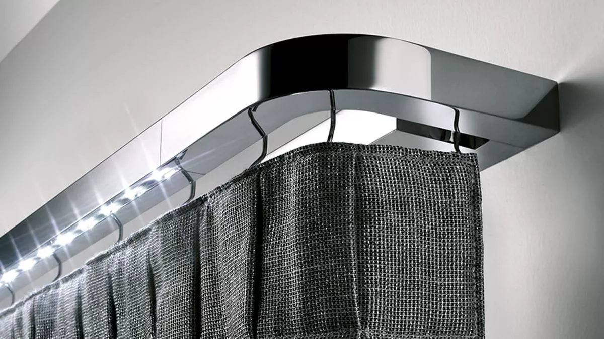 form follows funktion. Die Innenlauf-Gardinenstange LUCILLA LUX von Casa Valentina ist edel und schlicht, eine fliessende Form, von Gardinenlauf in die Träger übergehend. Auch gerade in den Farben Chrom und Weiss glänzend kommt die fließende Form perfekt zur Geltung. Technische Bereiche sind nicht sichtbar, der Gardinenlauf befindet sich nach hinten. Die integrierte Beleuchtung macht aus diesem Highlight ein echtes Highlight.