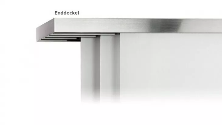 Profil inkl. Deckenträger, Enddeckel und Zubehör [OHNE Paneelwagen u. Beschwerung] wahlweise inkl. Trägerverlängerung 50 cm |