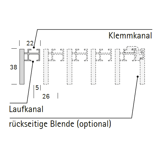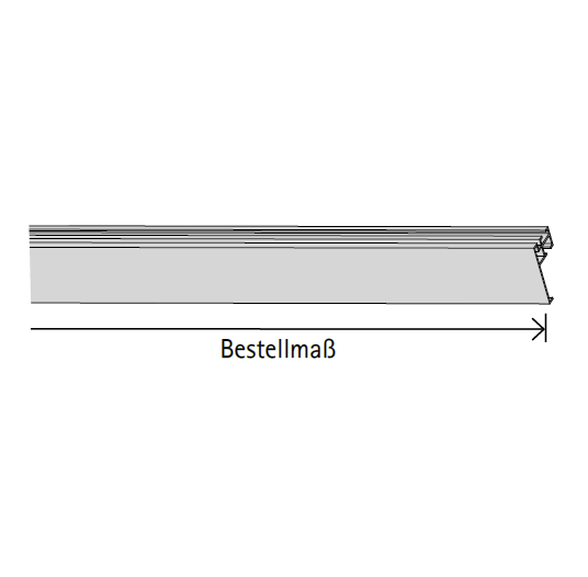 Bestelllänge = Länge (siehe Skizze) / Hinweis: Die Gesamtlänge inkl. Blende ist je Seite 2 cm länger und nicht nachträglich kürzbar.