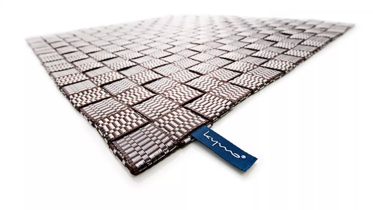 Kymo Teppich MNML Outdoor I Indoor: Die verflochtenen Polyestergurte des Teppich bilden eine UV-resistente, wasserabweisende, wetterbeständige Oberfläche. Der Outdoor Kymo Teppich MNML wird nach Maß gefertigt und ist in 4 Farben erhältlich. Die grobe Struktur der verflochtenen Gurte sind dem alpinen Klettersport nachempfunden. Der robuste und witterungsbeständige Kymo Teppich ist besonders für Objekteinrichtung und Outdoor Einsatz für z.B. SPAs oder Pool Areas geeignet.